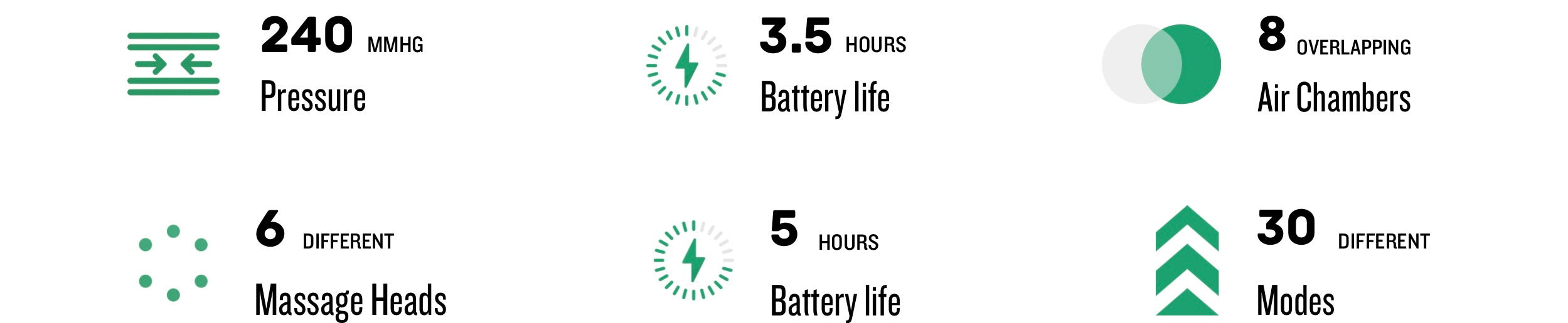 Total Recovery Solution: Target large muscle groups with sequential compression and pinpoint tension relief with deep percussion therapy.